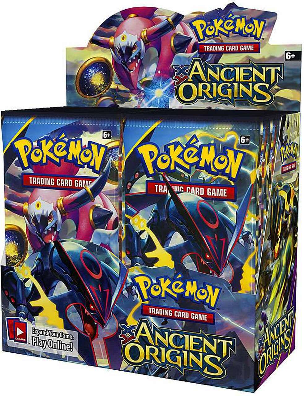 The Pokemon TCG: XY - Ancient Origins expansion transforms ancient secrets into modern battling techniques, with all-new Special Energy cards, new Ancient Traits, and Shiny versions of Primal Kyogre-EX, Primal Groudon-EX, and Mega Rayquaza-EX! The power of the ancients is unbound!