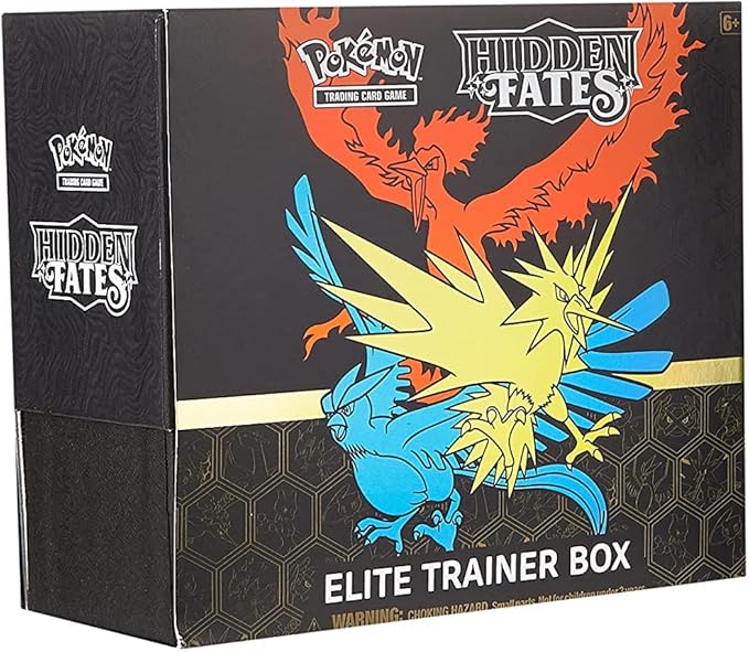 A wild set loaded with all-time favorites, the Pokémon TCG: Hidden Fates expansion is a collector’s dream and a player’s paradise! The Pokémon TCG: Hidden Fates Elite Trainer Box contains everything you need to get started collecting this unique new expansion. In addition to ten Hidden Fates booster packs, you can soar to new heights with a full-art foil promo card featuring the first TAG TEAM trio, Moltres & Zapdos & Articuno-GX! The box also includes card sleeves featuring this Legendary trio that will keep your cards looking pristine, along with plenty of Energy cards. To help get you into the game, there are handy accessories like dice and condition markers, plus a player’s guide that features a handy card list and useful strategies to take into battle. Your fate will shine bright with the Pokémon TCG: Hidden Fates Elite Trainer Box!